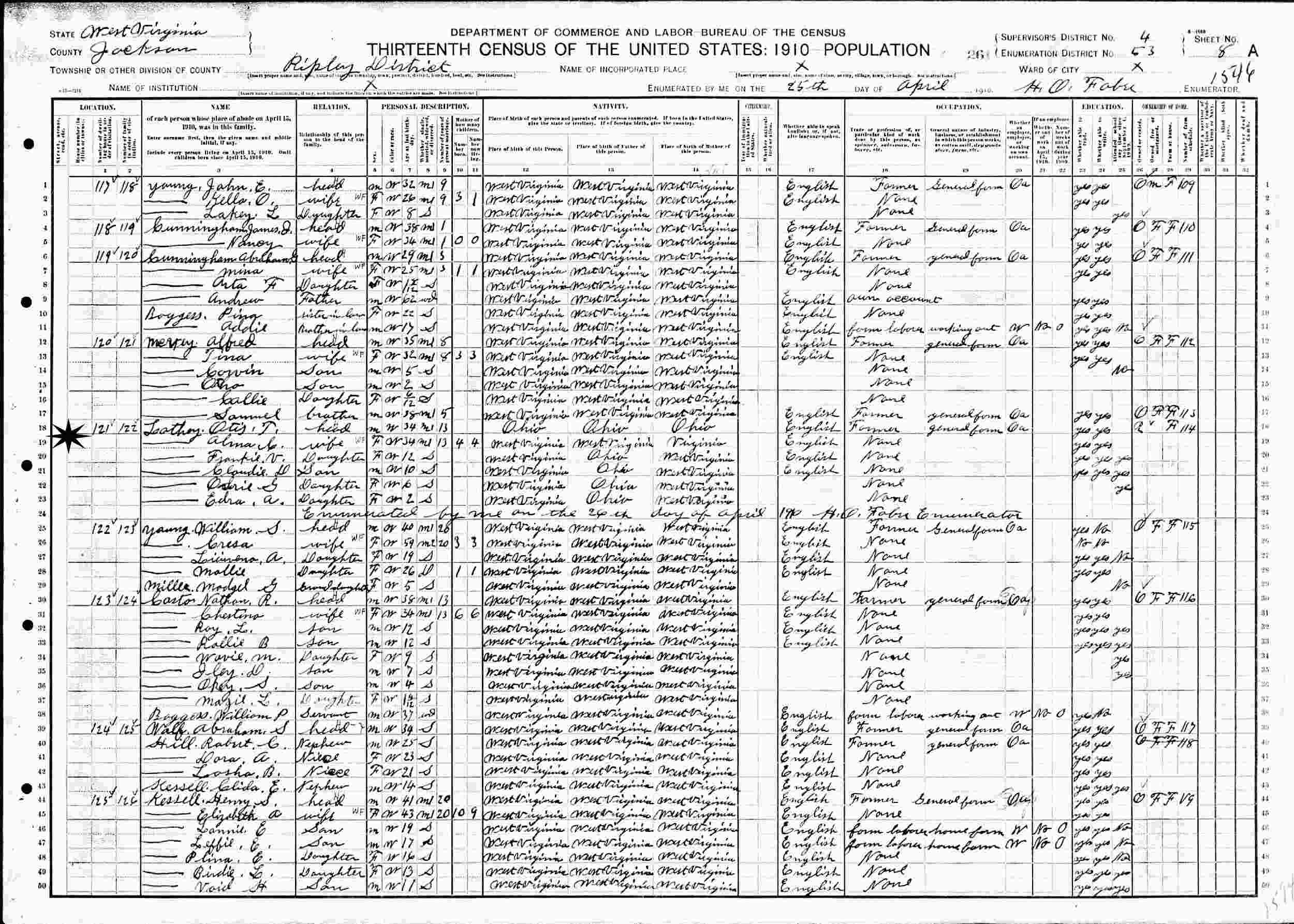 April 3, 1930 - Supervisor's District 27, Enumeration District 53-4, Lebanon Township, Meigs County, Ohio.