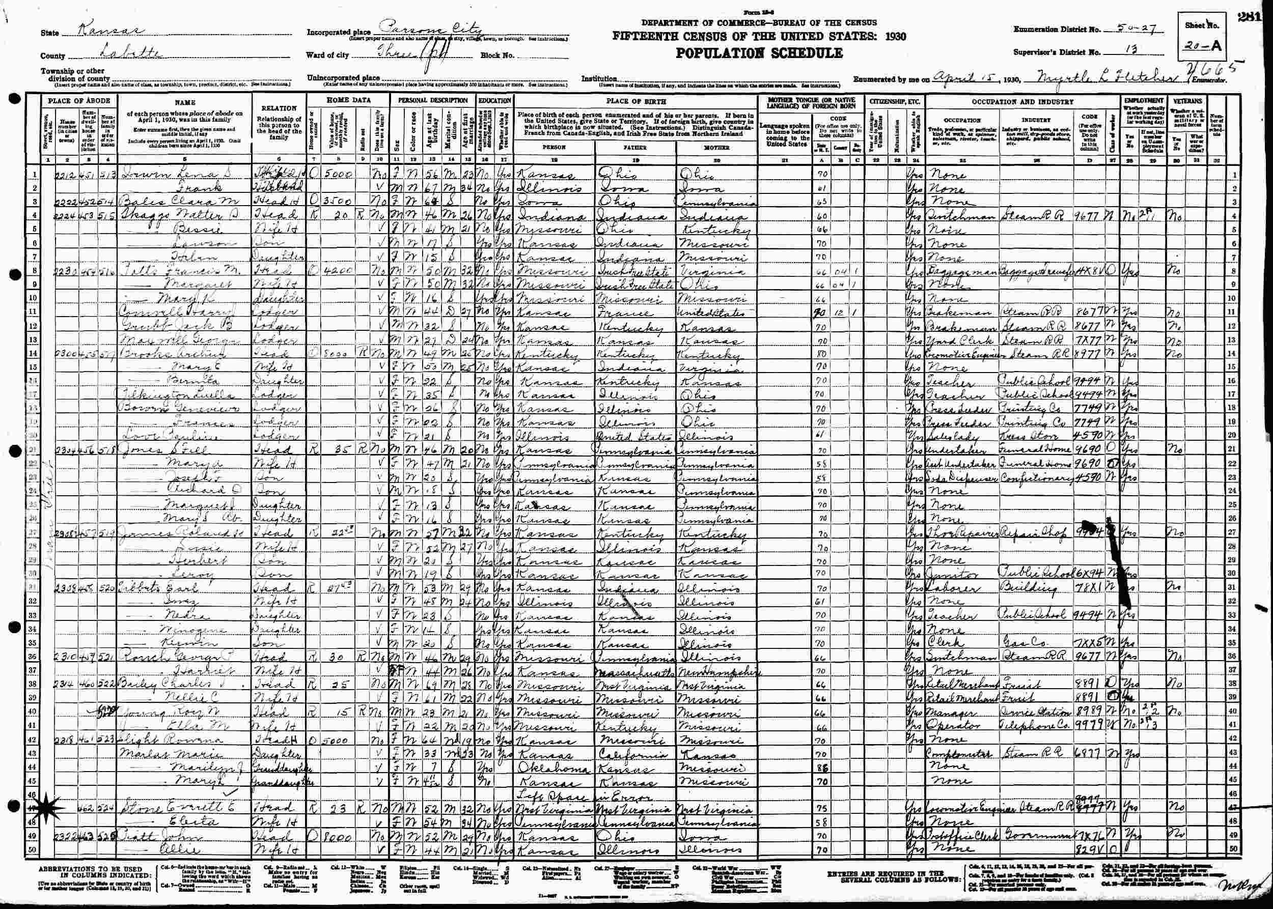 April 15, 1930 - 2318 Main Street, Ward 3, Supervisor's District 12, Enumeration District 50-27, Parsons, Labette County, Kansas.