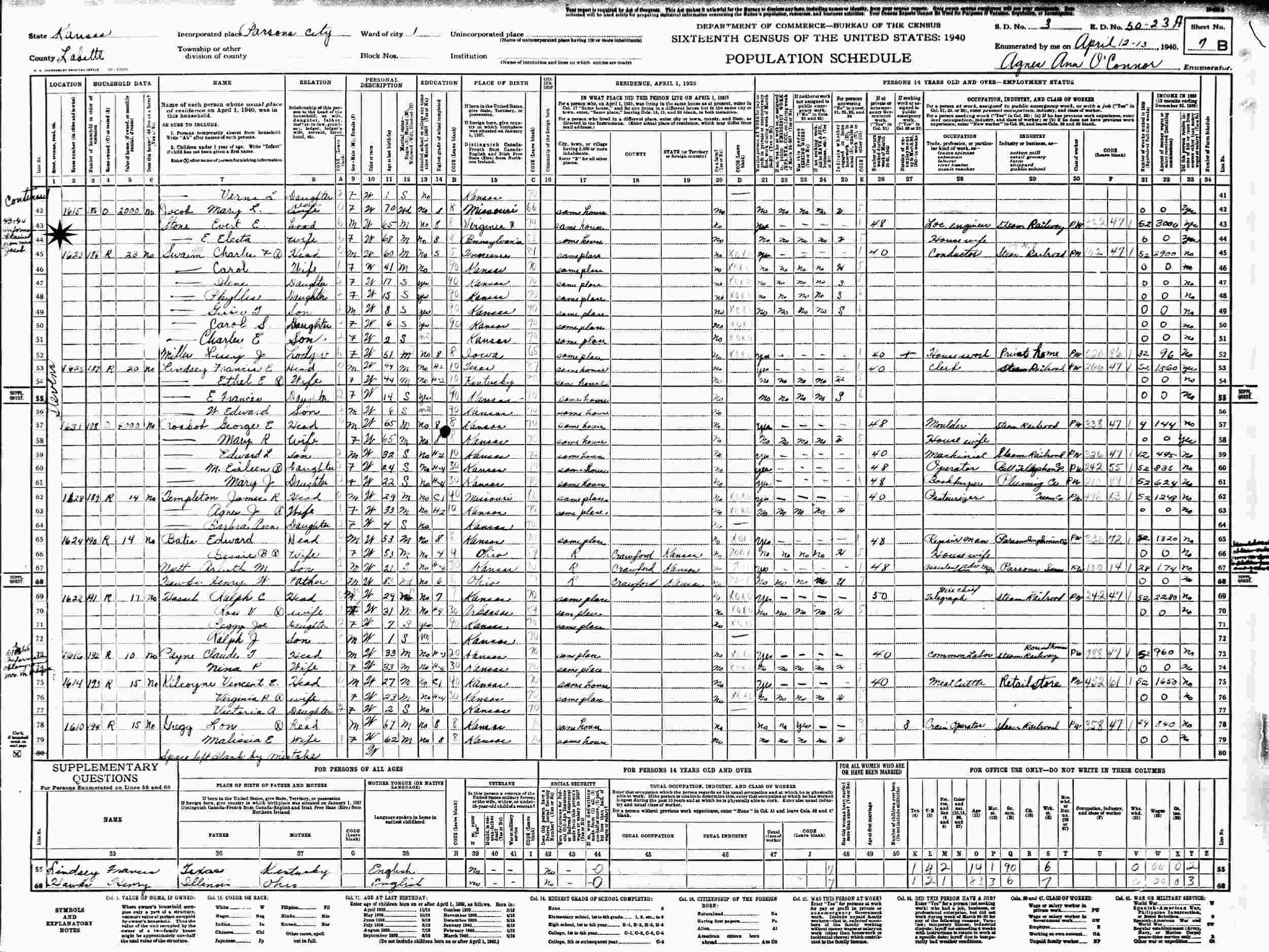 April 12-13, 1940 - 1615 Stevens, Supervisor's District 3, Enumeration District 50-23A, Parsons, Labette County, Kansas.