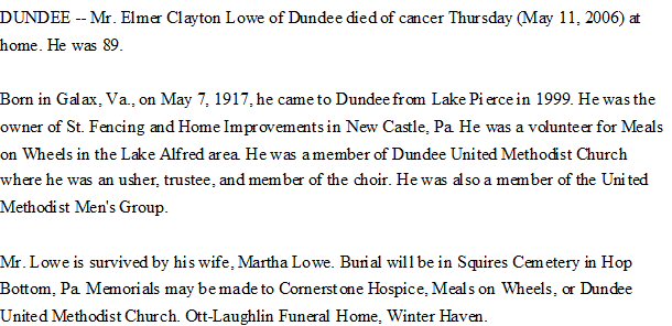 Died: May 11, 2006 in Dundee, Polk County, Florida.
