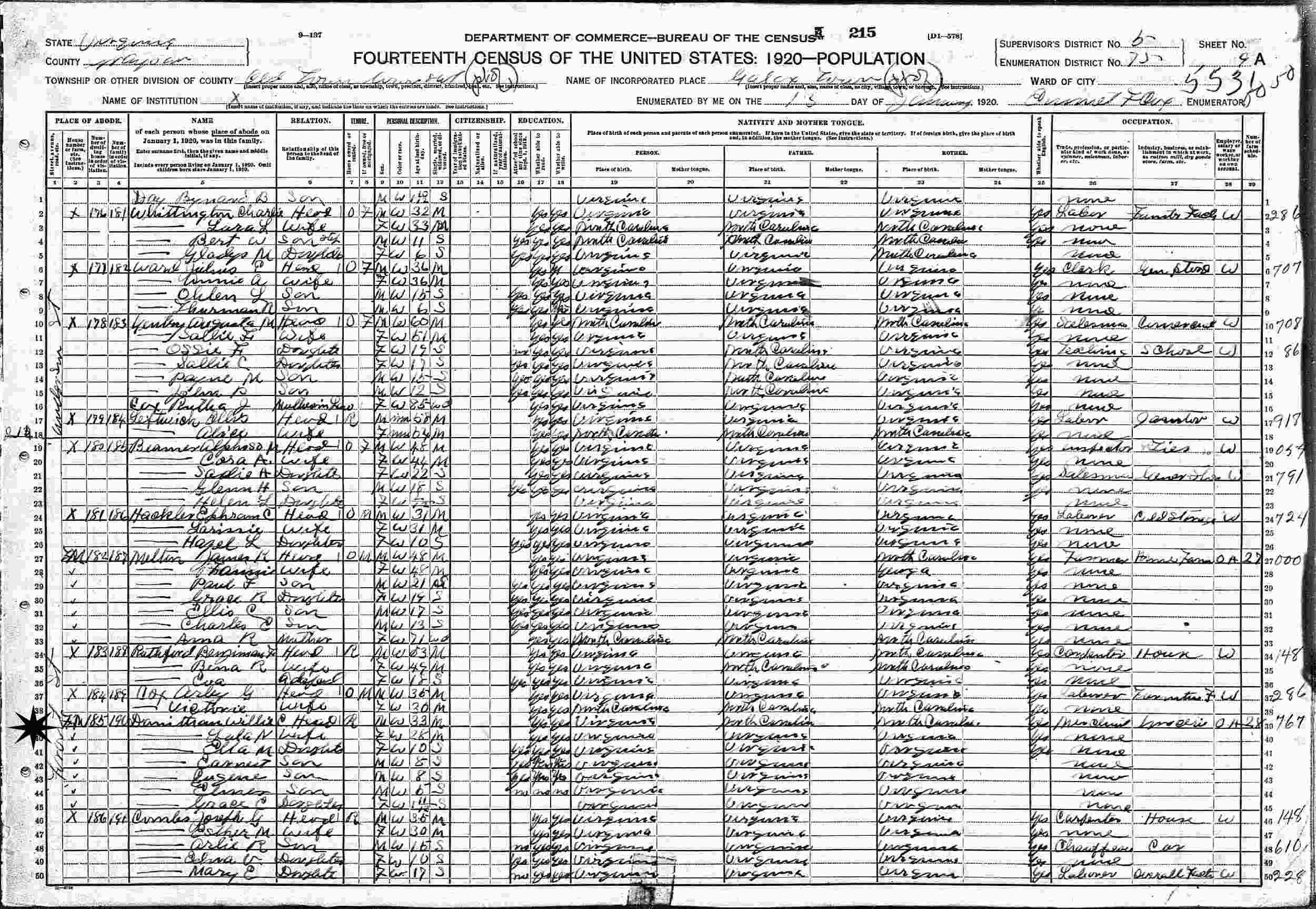 January 13, 1920 - Forant St, Supervisor's District 5, Enumeration District 75, Old Town District, Galax Twon, Grayson County, Virginia.