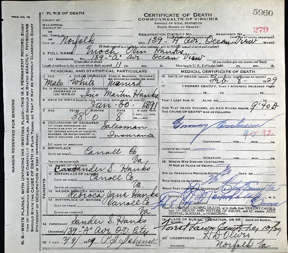 Notes for ENOCH OLIN HANKS: