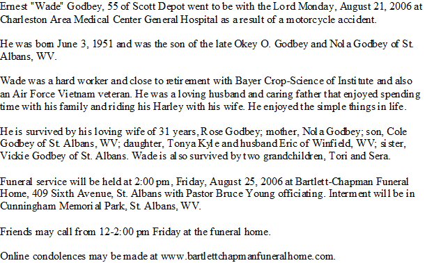 Notes for ERNEST WADE GODBEY: