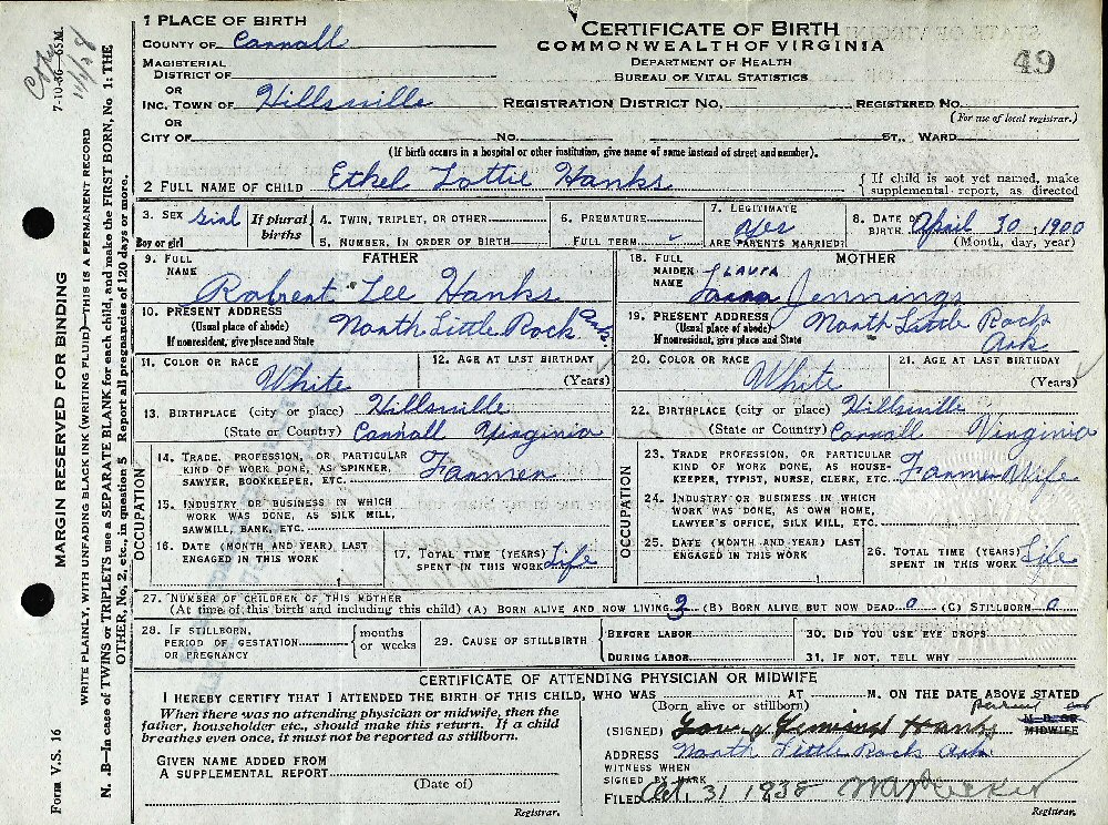Notes for ETHEL LOTTIE HANKS HOGAN GRIMMETT: