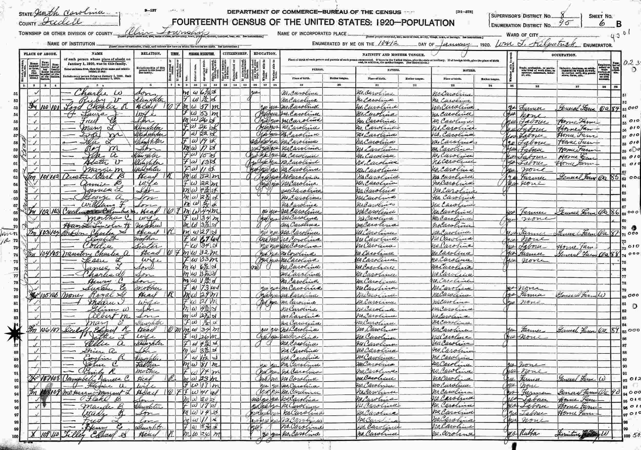 January 10-12, 1920 - Supervisor's District 8, Enumeration District 95, Olin, Iredell County, North Carolina.