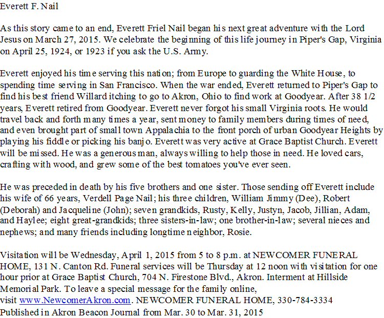 Died: March 27, 2015 in Probably Akron, Summit County, Ohio.