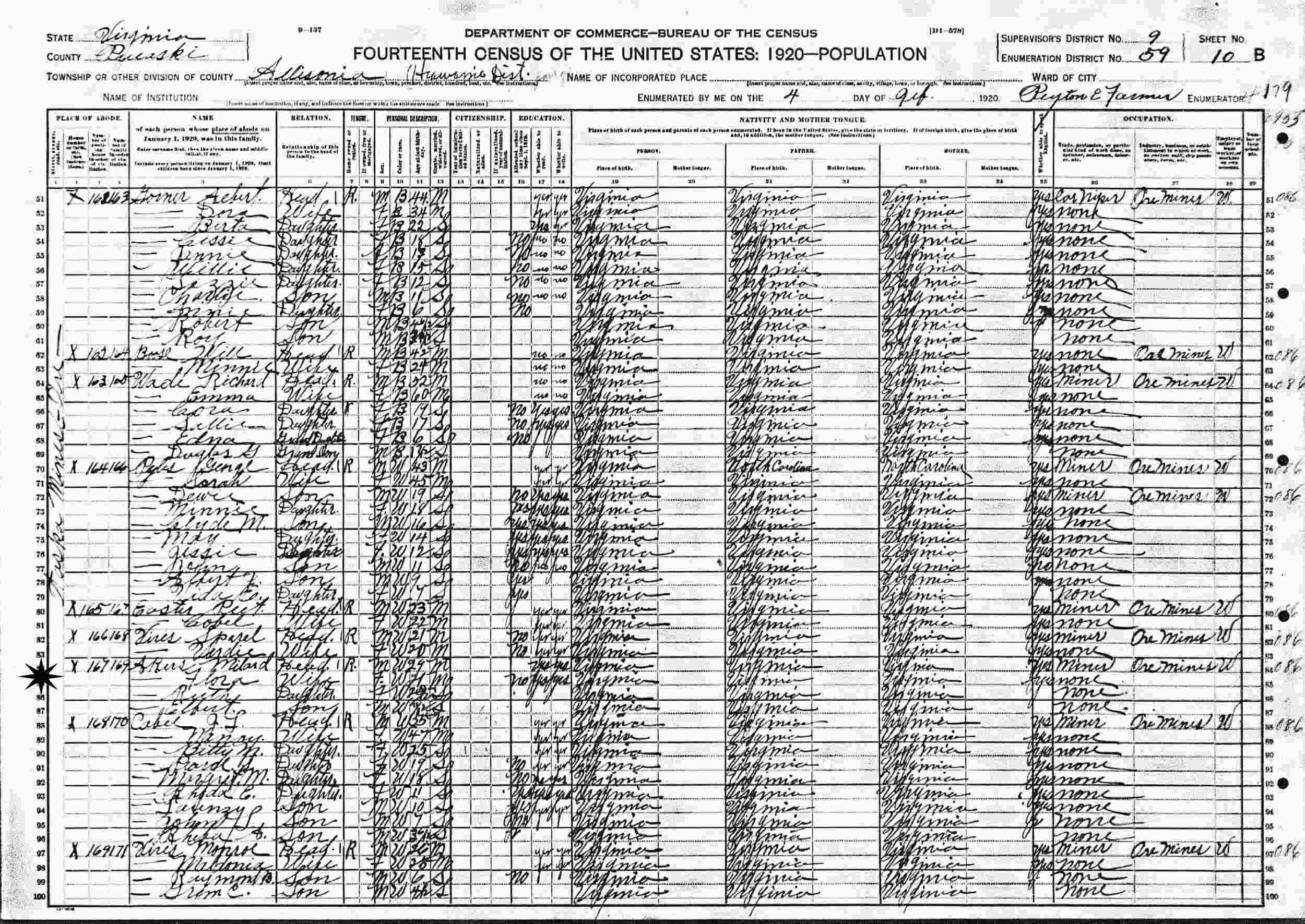 January 20, 1920 - Taska Minest Ore, Supervisor's District 9, Enumeration District 59, Allisonia, Pulaski County, Virginia.
