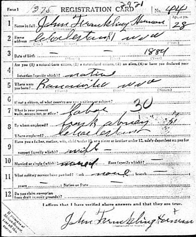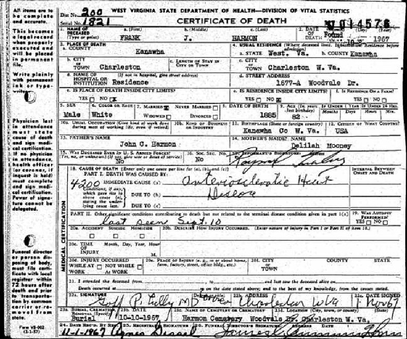 Notes for FRANKLIN "FRANK" JOHN HARMON: