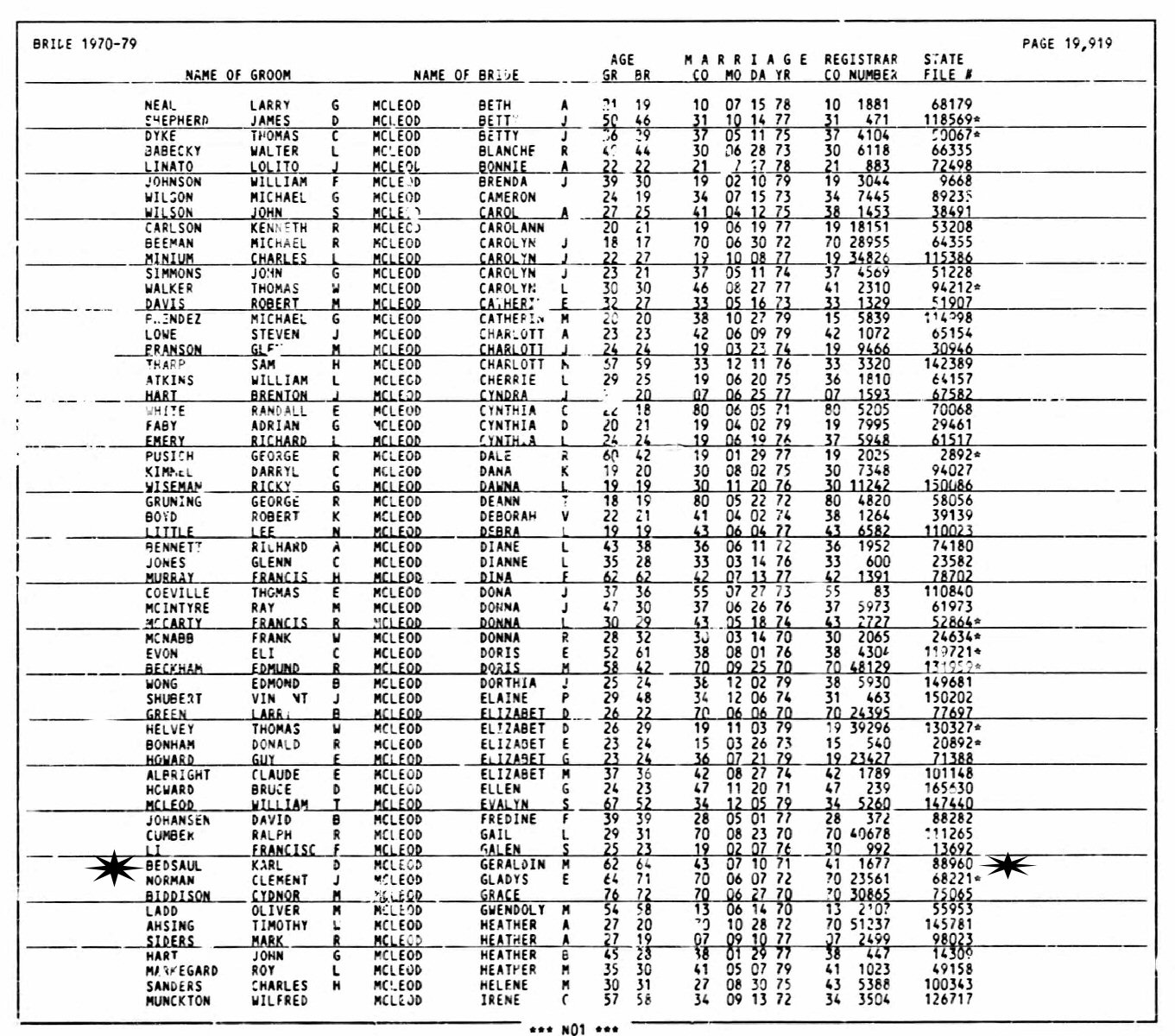 (2) Karl Davis Bedsaul July 10, 1971 in Santa Clara County, California. (Marriage Certificate #88960.)