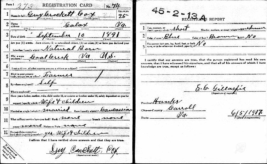 Married: Josie M Cox December 26, 1912 in Alleghany County, North Carolina.
