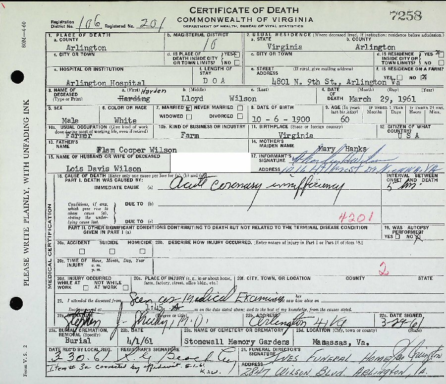 Died: March 29, 1961 in Arlington, Virginia.