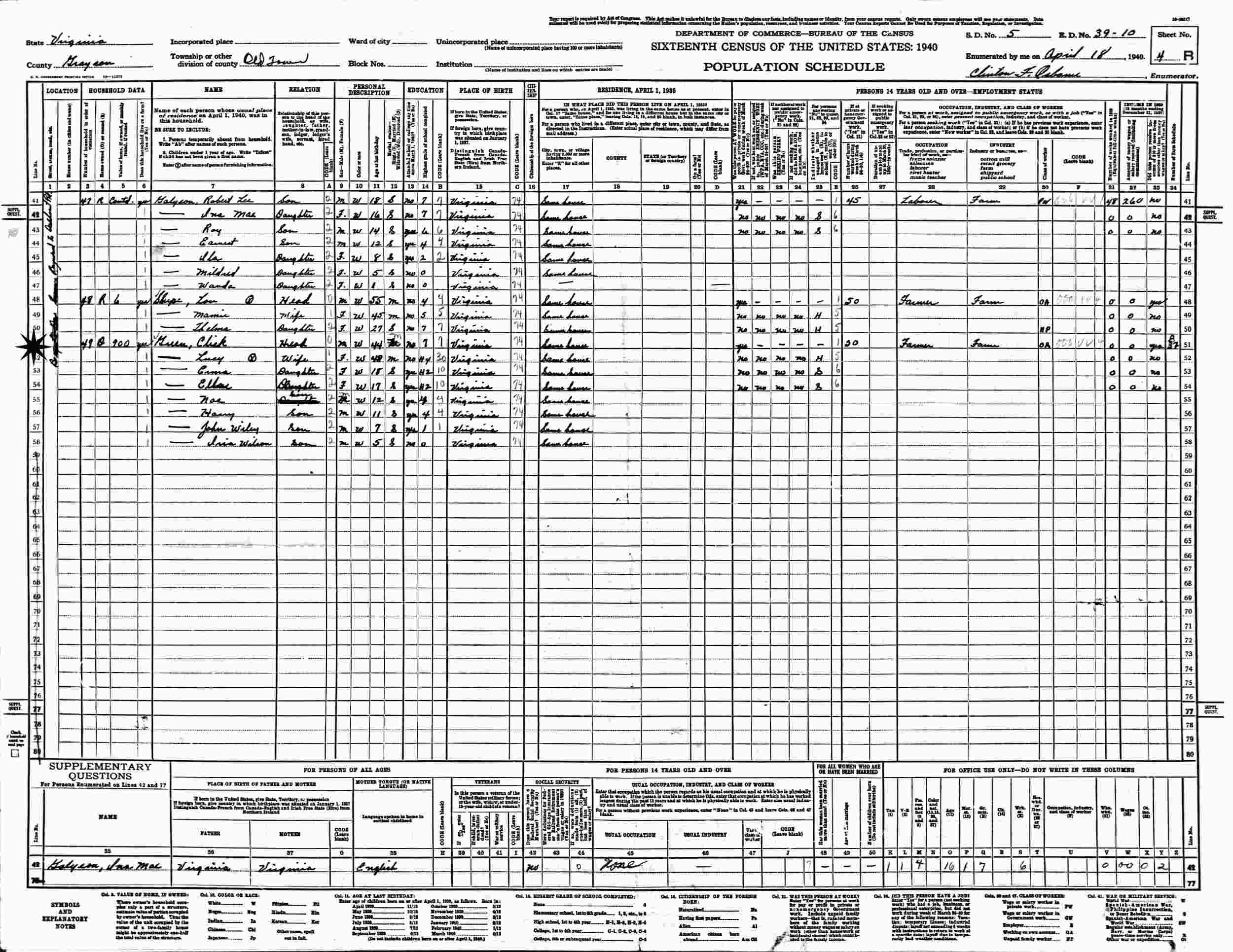 April 18, 1940 - Baywood to Dalheart Road, Supervisor's District 5, Enumeration District 39-10, Old Town, Grayson County, Virginia.