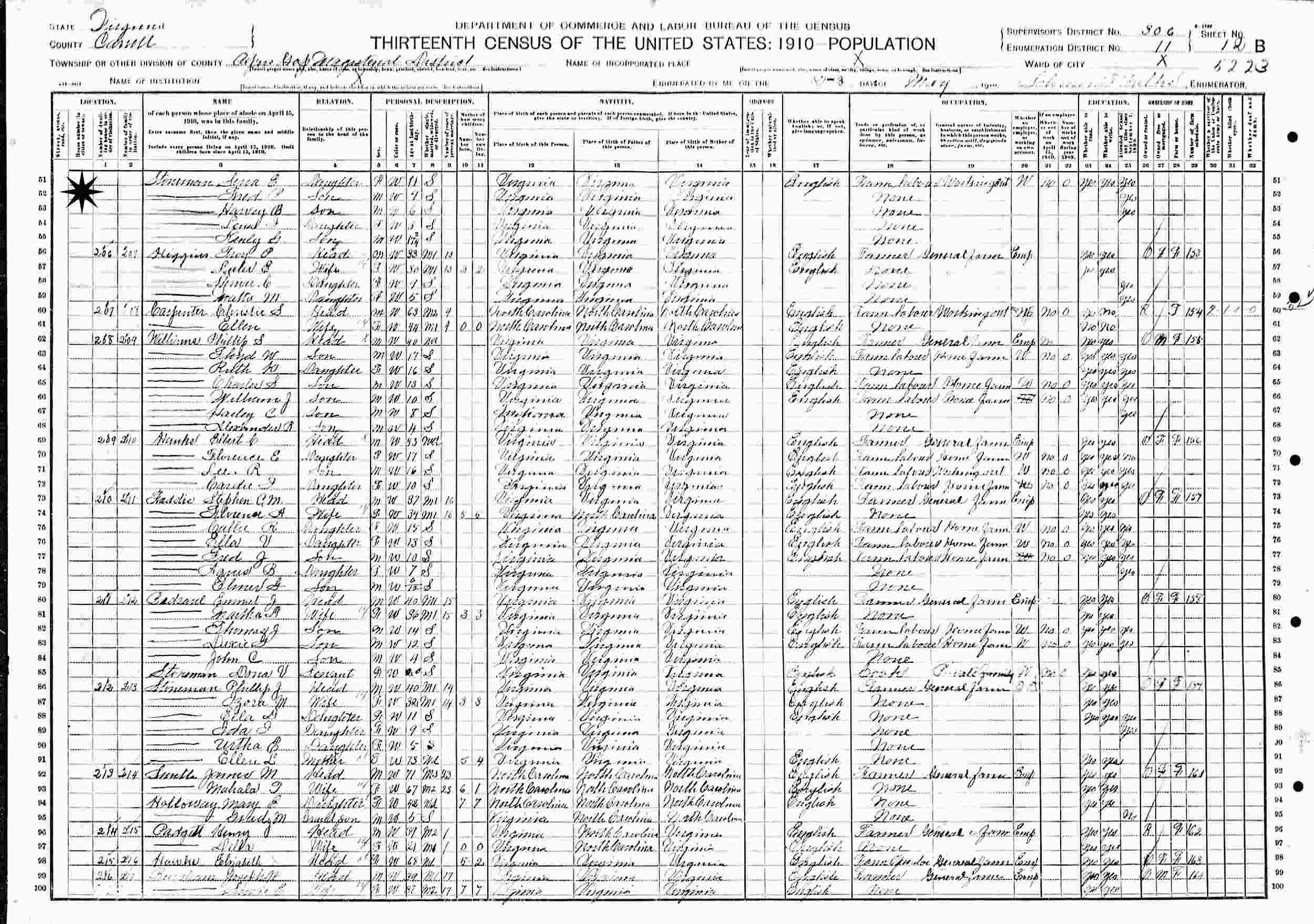 May 2-3, 1910 - Pipers Gap Magisterial District, Supervisor's Districtr 306, Enumeration District 11, Carroll County, Virginia.