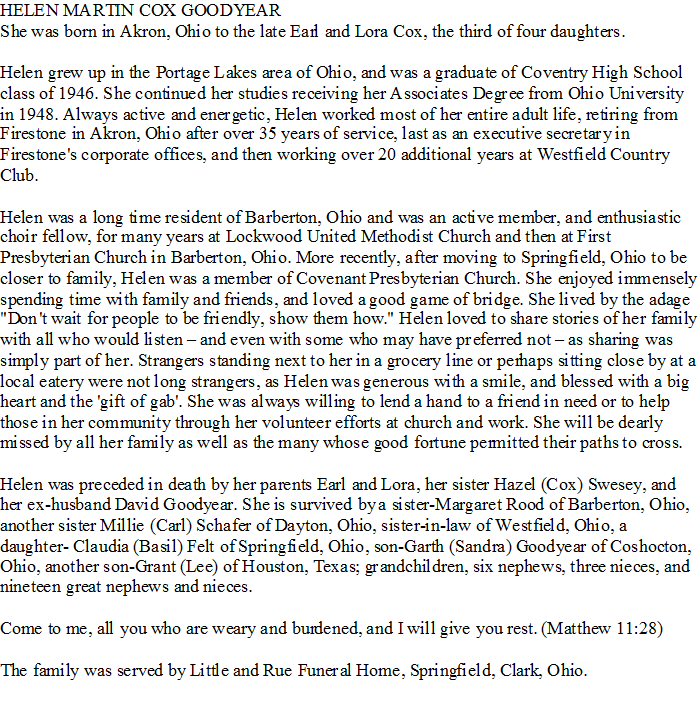 Notes for HELEN MARTIN COX GOODYEAR: