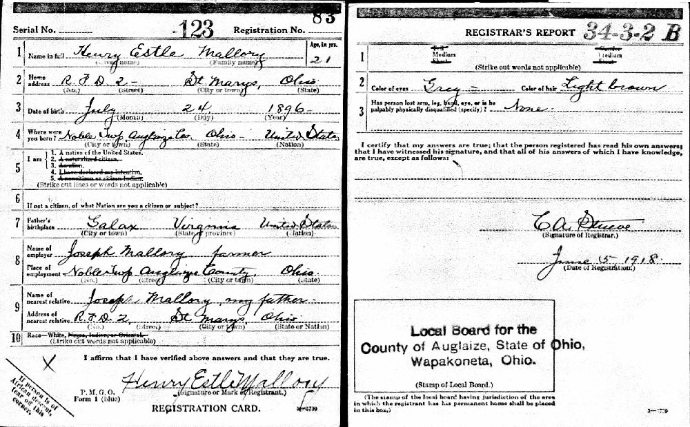 June 5, 1917 - St. Marys, Auglaize County, Ohio.