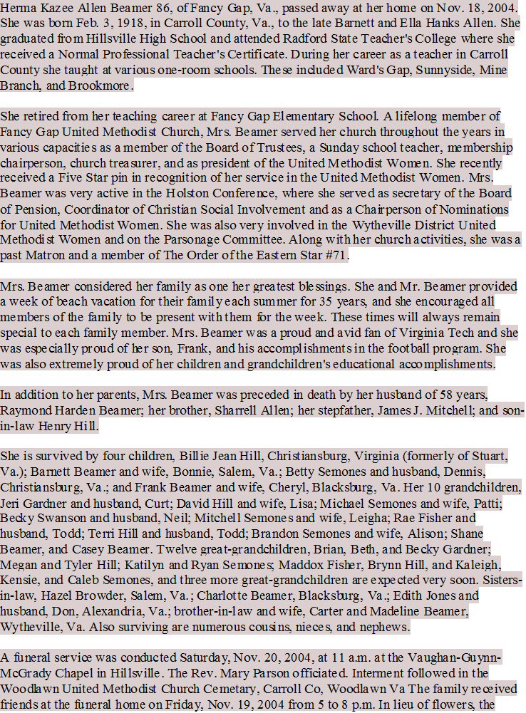 Notes for HERMA KAZEE ALLEN BEAMER: