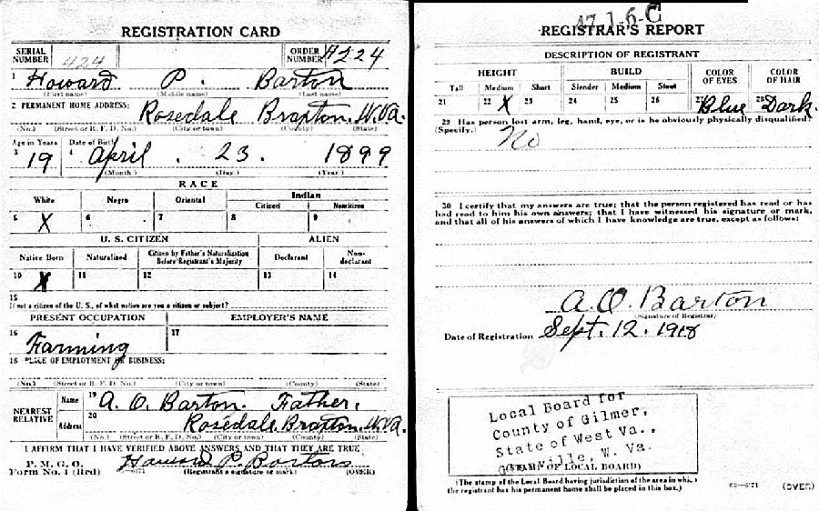 September 12, 1918 - Rosedale, Gilmer County, West Virginia.