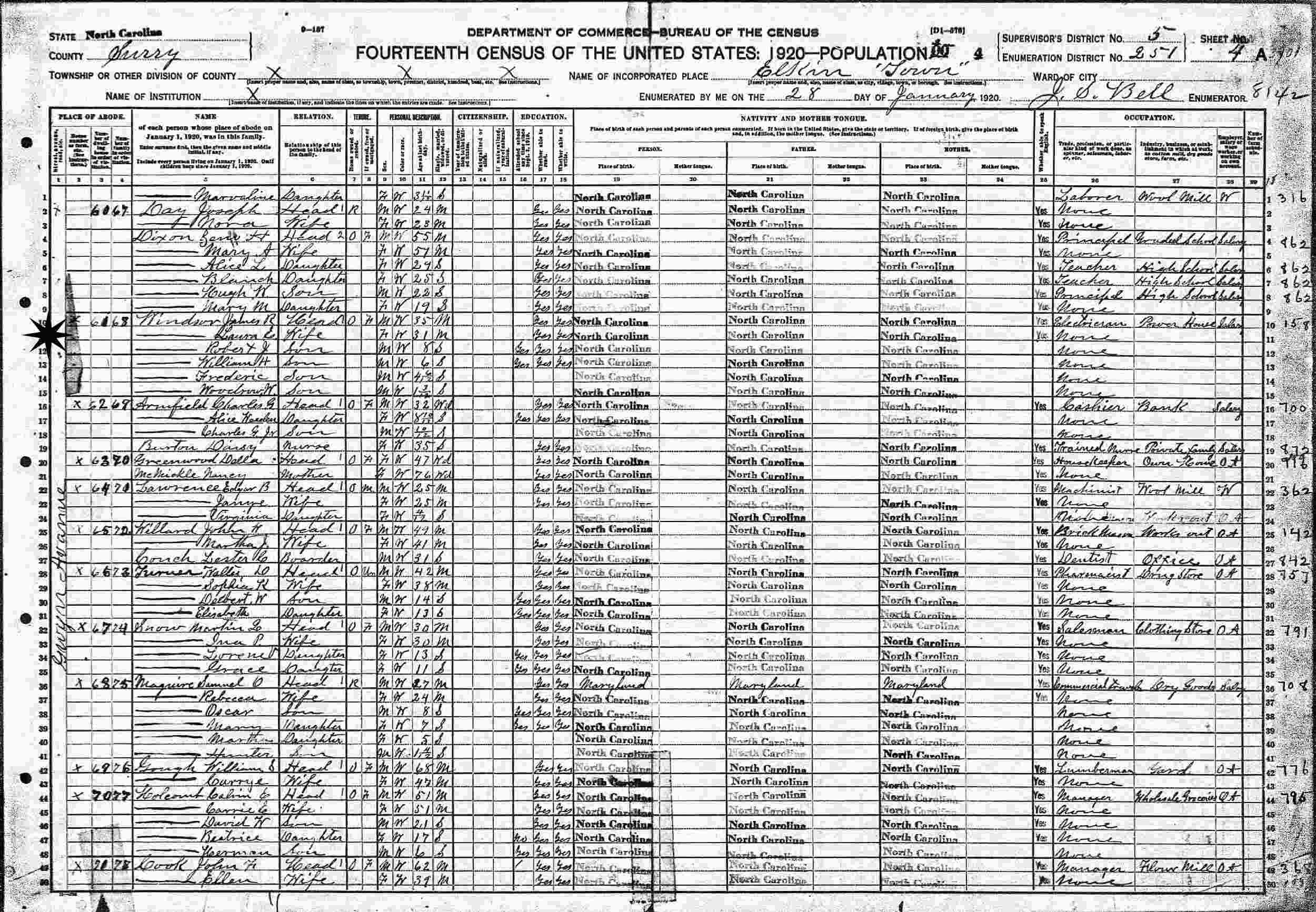 1920 - Gwyn Avenue, Elkin, Supervisor's District 5, Enumeration District 251, Surry County, North Carolina.