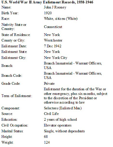 Notes for JOHN JEROME ROONEY: