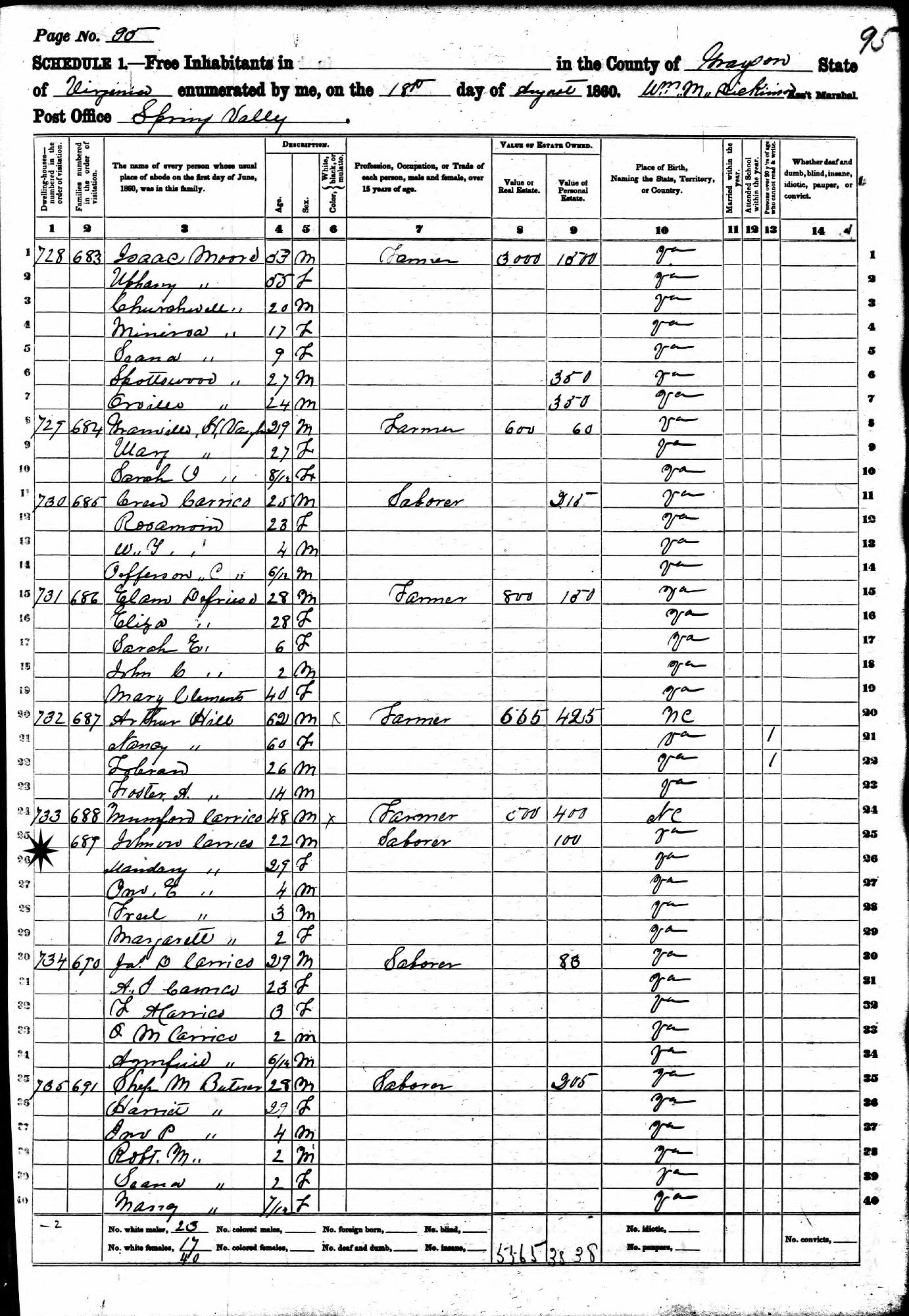 July 17, 1850 - District 19, Grayson County, Virginia.