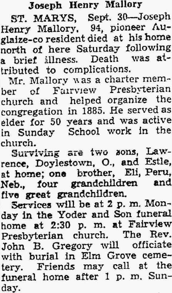 Notes for JOSEPH HENRY MALLORY: