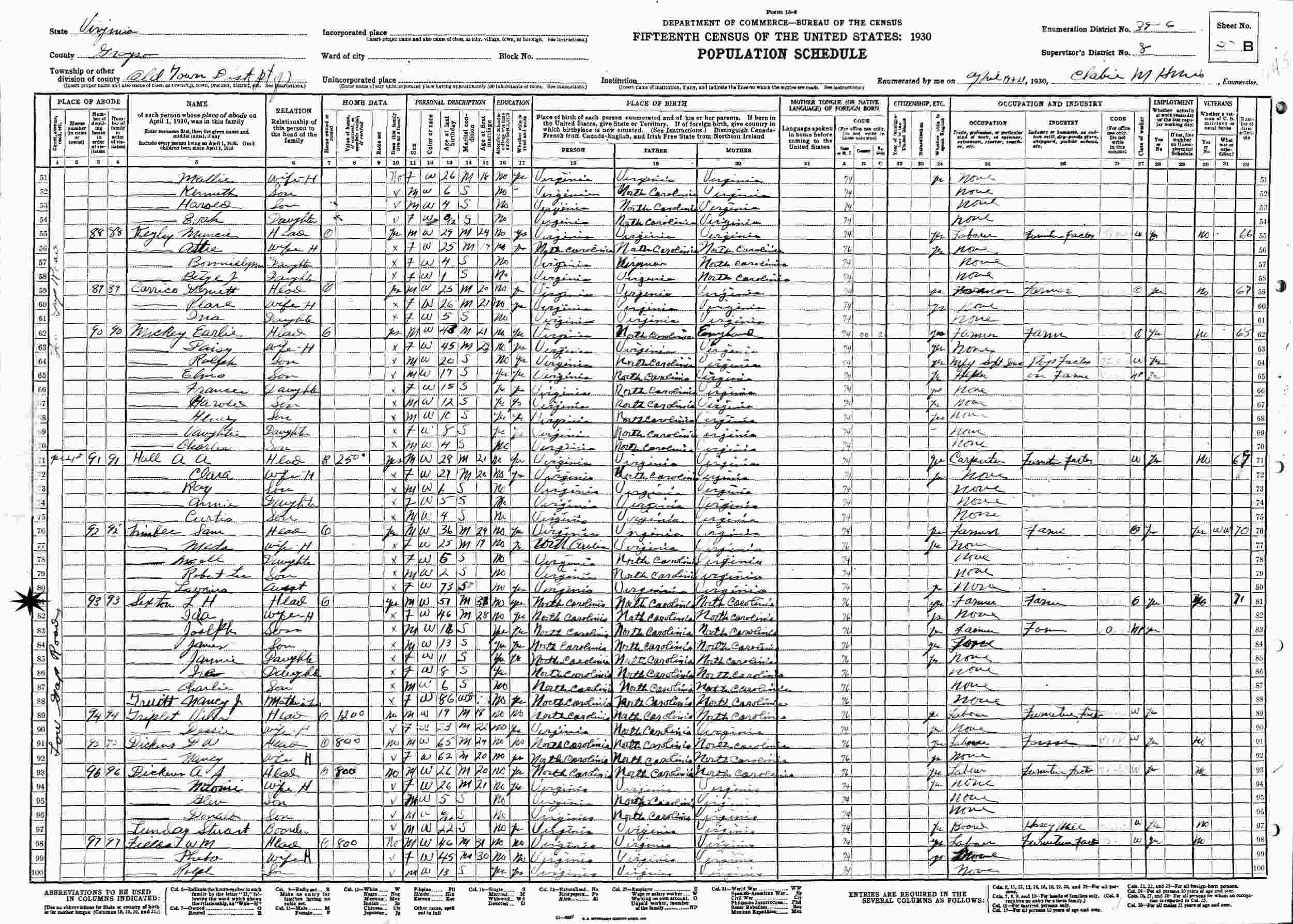 April 19-21, 1930 - Low Gap Road, Supervisor's District 8, Enumeration District 39-6, Oldtown District, Grayson County, Virginia.