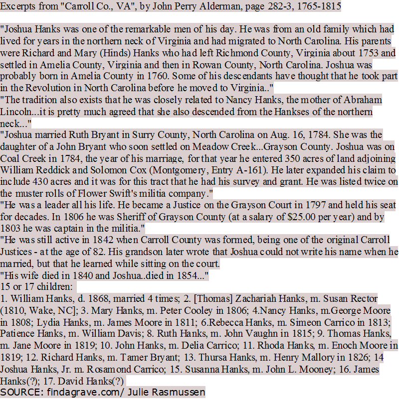 Notes for JOSHUA HANKS, SR.: