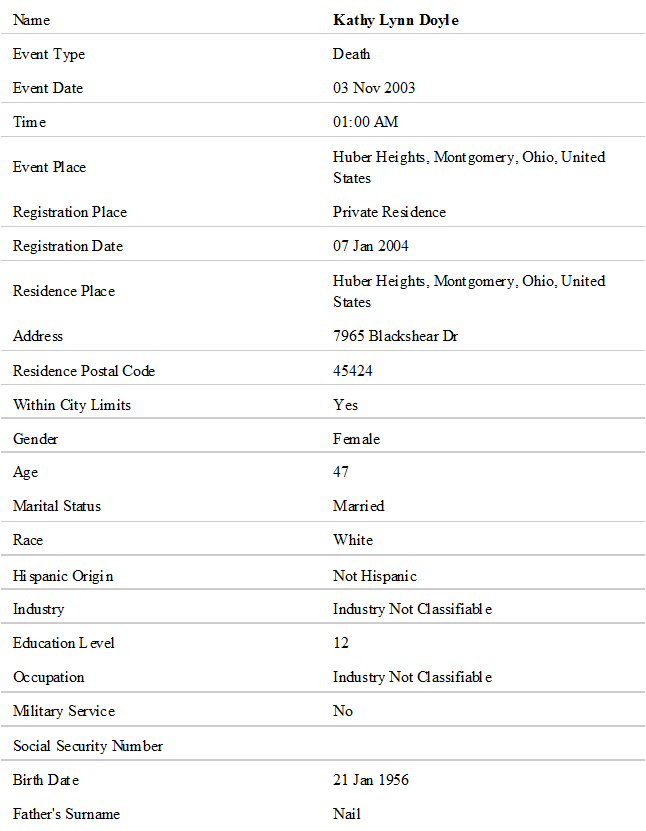 Notes for KATHY LYNN NAIL DOYLE: