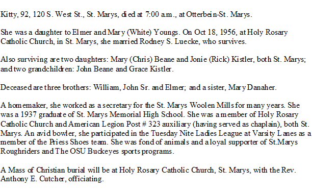 Notes for KATHRYN B " KITTY" YOUNGS LUECKE:
