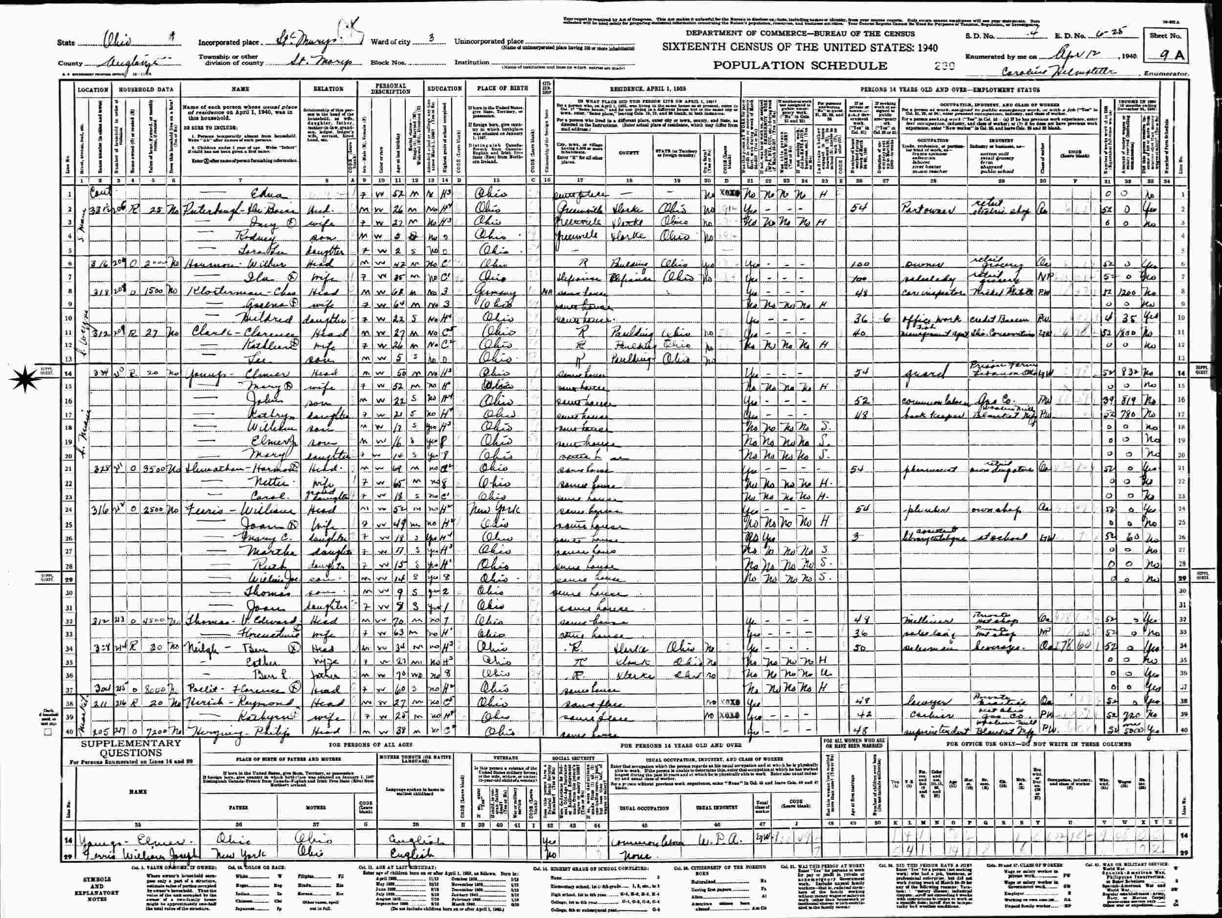 April 12, 1940 - 334 S Main, Ward 3, Supervisor's District 4 Enumeration District 6-25, St. Marys, Auglaize County, Ohio.