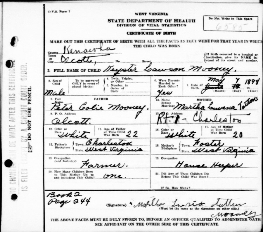 Born: May 07, 1898 in Olcott, Kanawha County, West Virginia.