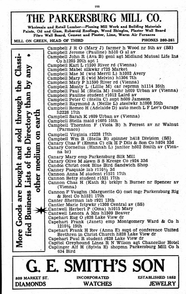 1932 - 1015 Mary, Parkersburg, Wood County, West Virginia.