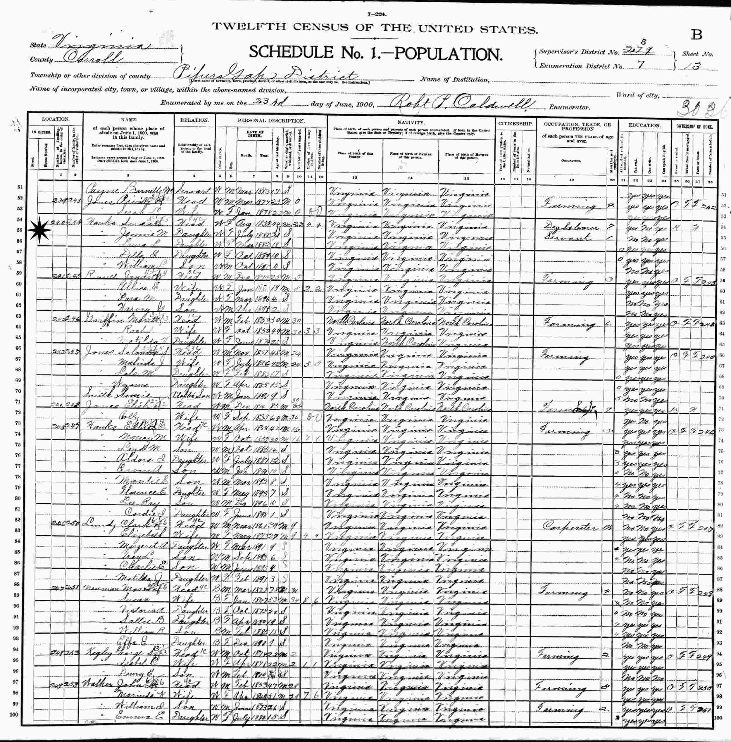 June 23, 1900 - Supervisor's District 279, Enumeraton District 7, Piper's Gap, Carroll County, Virginia.