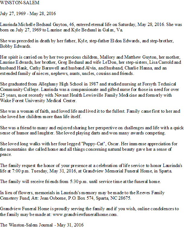 Notes for LAURINDA MICHELLE BEDSAUL GUYTON:
