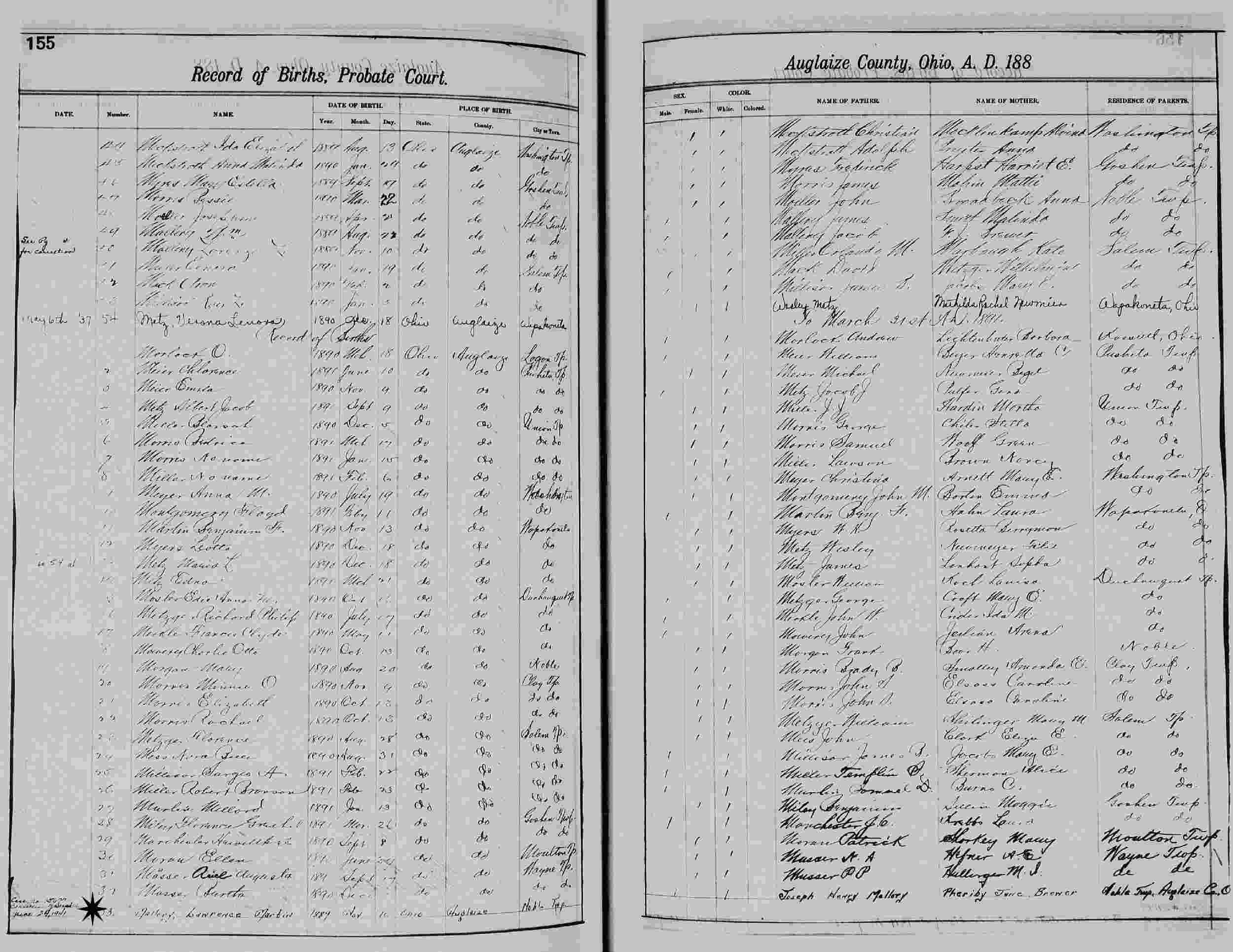 Born: November 10, 1889 in Noble, Auglaize County, Ohio.