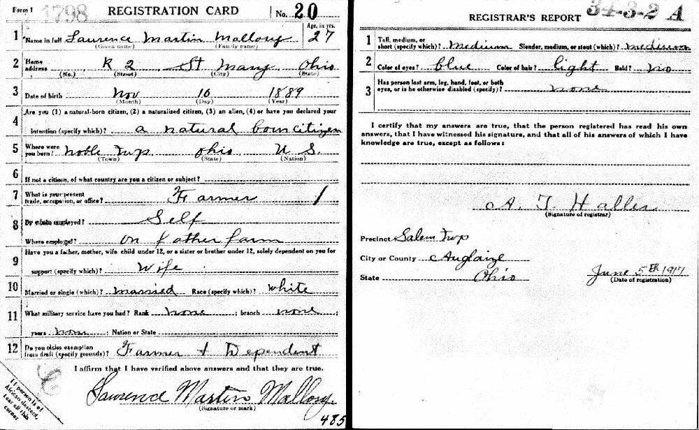 June 5, 1917 - R2, St. Marys, Auglaize County, Ohio.