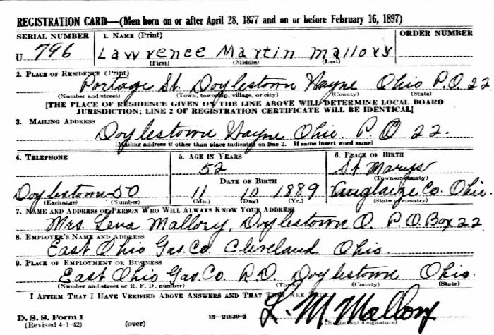 Notes for LAWRENCE MARTIN MALLORY: