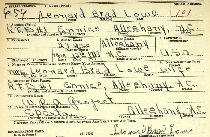 Born: March 12, 1913 in Ennice, Alleghany County, North Carolina.