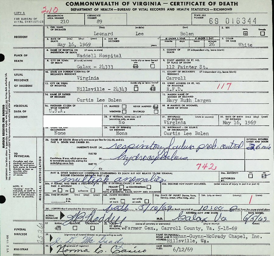 Died: May 16, 1969 in Carroll County, Virginia.