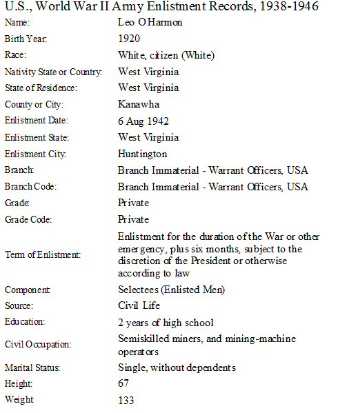 Notes for LEO OLA HARMON: