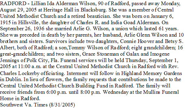 Notes for LILLIAN IDA ALDERMAN WILSON: