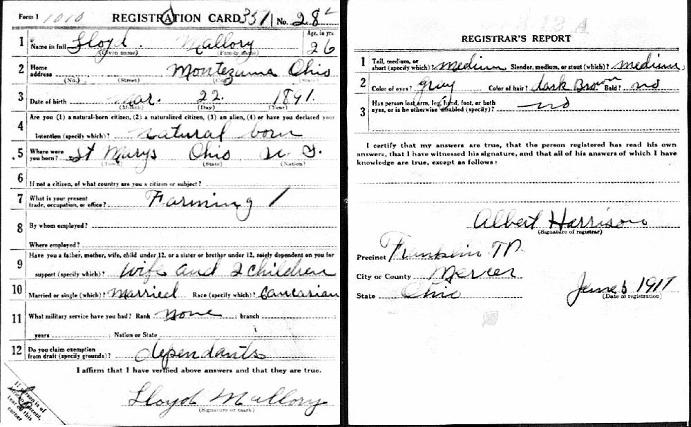 June 6, 1917 - Montezuma, Mercer County, Ohio.