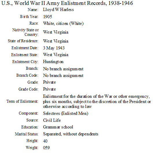 Notes for LLOYD WILLIAM HARLESS: