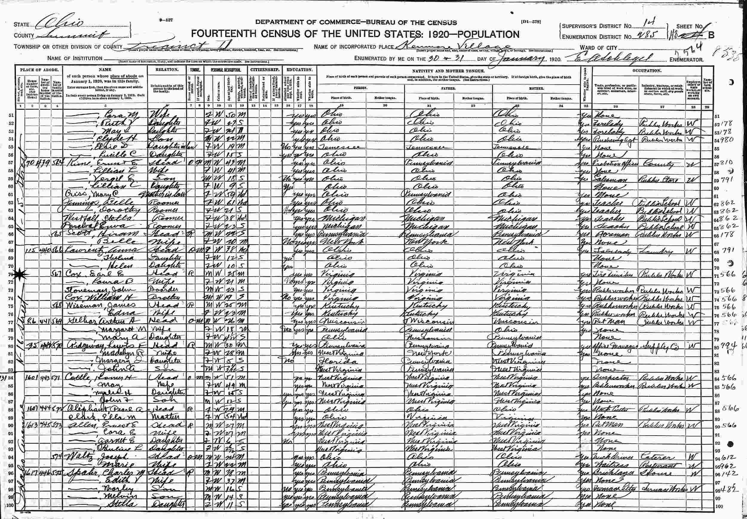 January 30-31, 1920 - 115 N. 16th Street, Precinct II, Supervisor's District 14, Enumeration District 285, Kenmore Village, Summit County, Ohio.