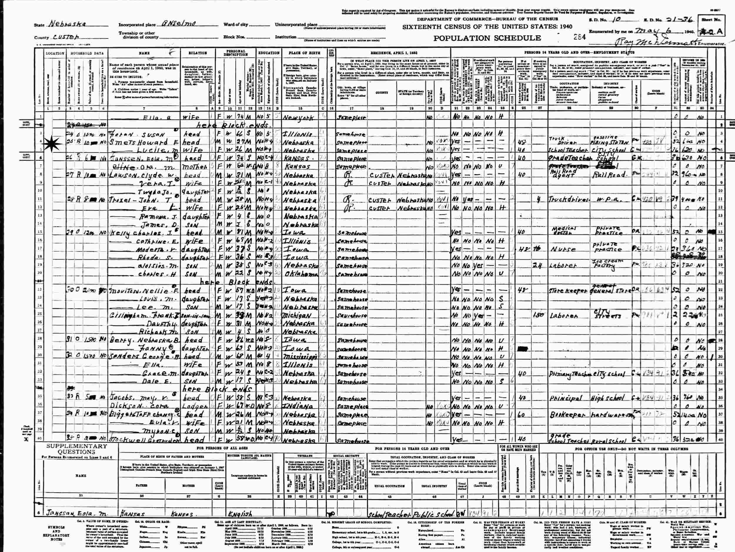 May 6, 1940 - Supervisor's District 10, Enumeration District 21-26, Anselmo, Custer County, Nebraska.