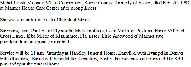 Notes for MABEL LESSIE MILLER MOONEY: