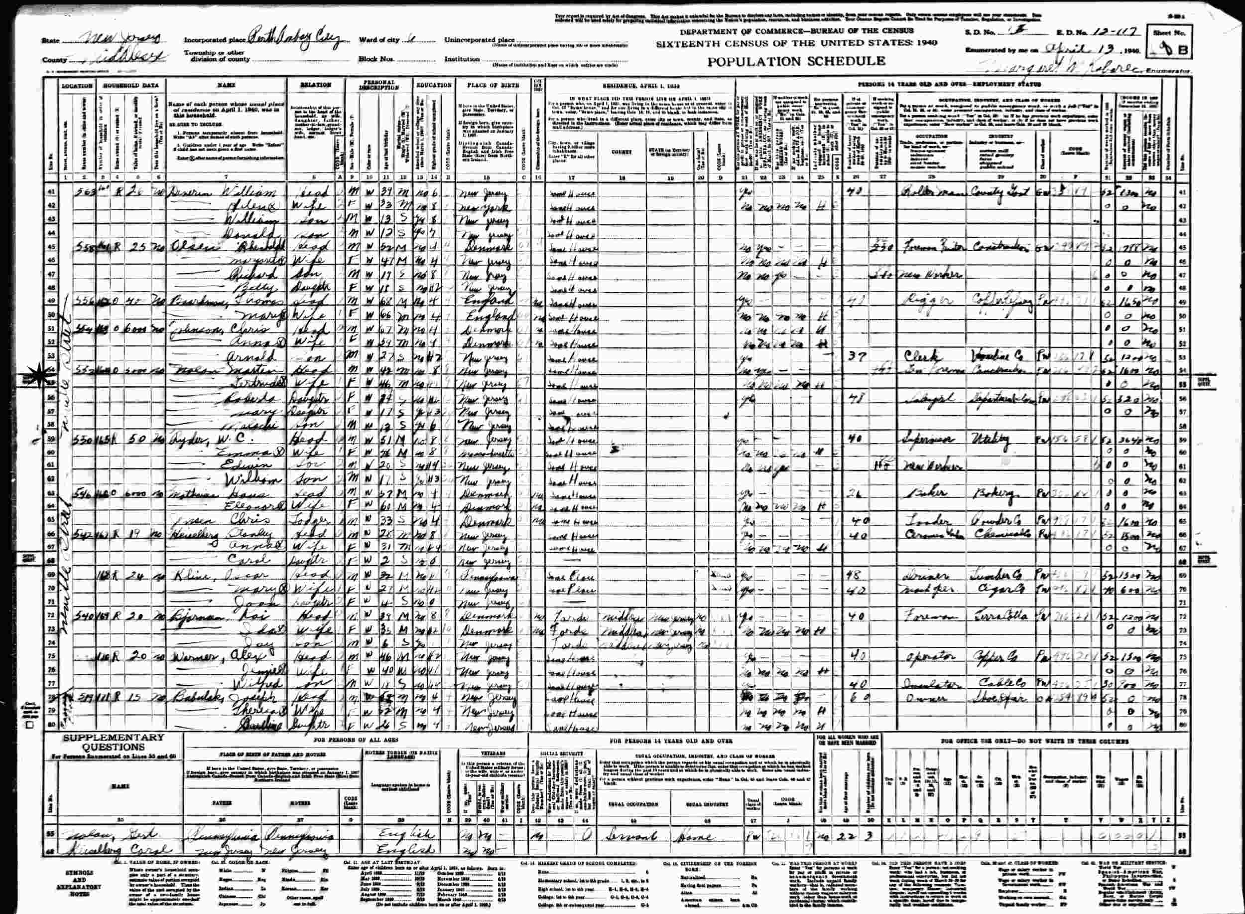 April 13, 1940 - 552 Neville Street, Supervisor's District 11, Enumeration District 12-117, Perth Amboy, Middlesex County, New Jersey.