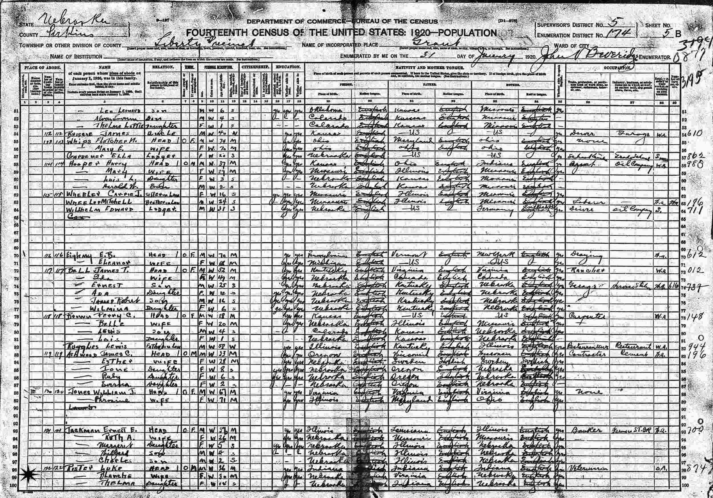 January 31, 1920 - Supervisor's District 6, Enumeration District 174, Liberty Precinct, Grant, Perkins County, Nebraska.