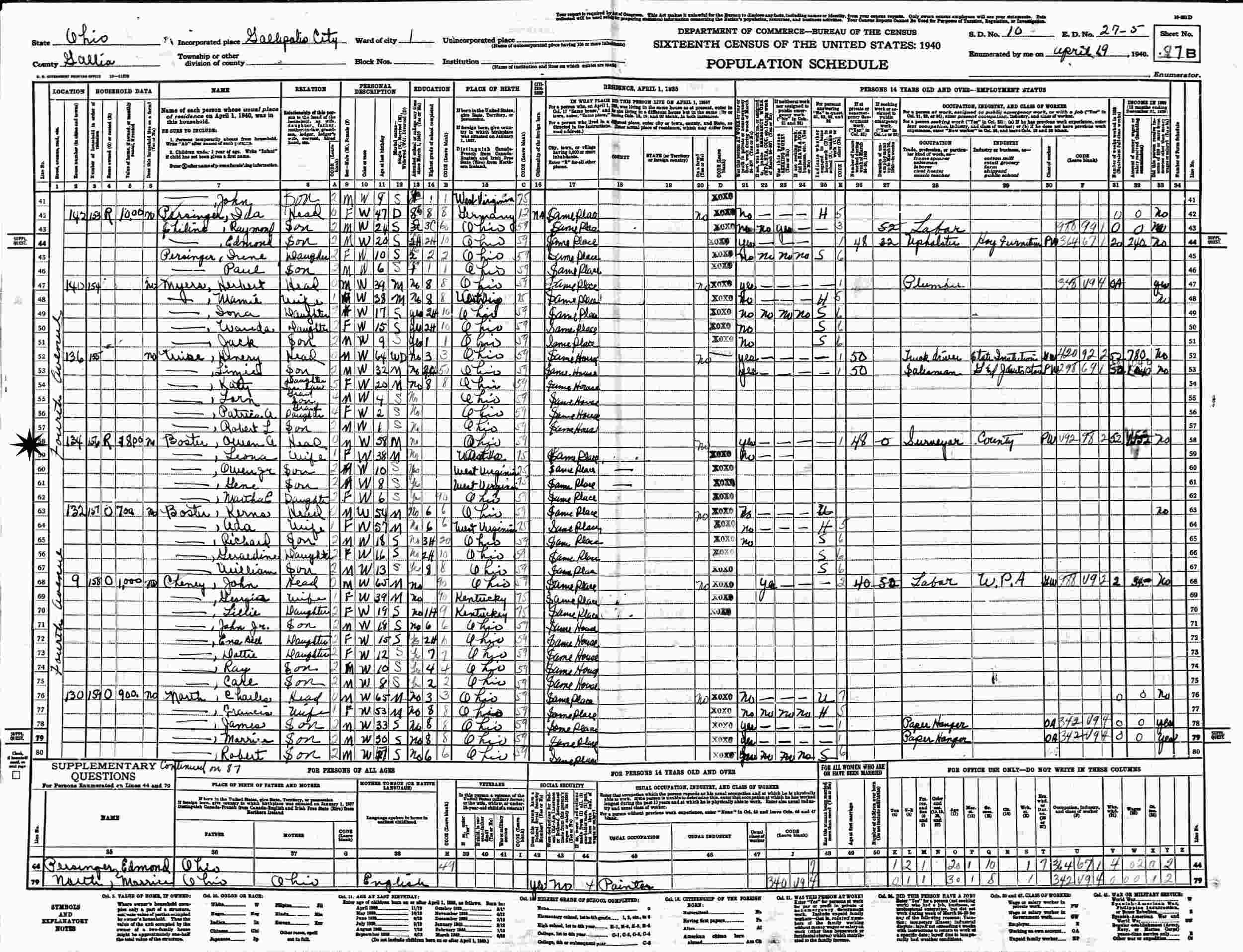 April 19, 1940 - 134 Fourth Avenue, Ward 1, Supervisor's District 10, Enumeration District 27-5, Gallipolis, Gallia County, Ohio.