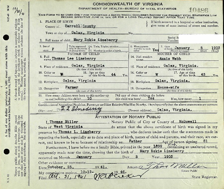 Born: January 5, 1903 in Galax, Carroll County, Virginia.